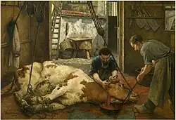 - ↑ Ventes publiques des tableaux de la Collection Lequime ( et 1er et ). La première vente Lequime a vu partir des tableaux de Jan Stobbaerts : la Boucherie (48), le Tondeur de chiens (49), Fête nuptiale de Vénus et Vulcain (50), Intérieur d'étable (51), Tonneau et pont (52), Distillerie Meeùs (53), Place et Marché (54), Le Repas. Intérieur de ferme (55), Intérieur d’Étable (56), Voûte et intérieur de maison (57), La vieille cuisine (58), Place et église (59), Cheval blanc (60), Rue des Chaises (61), Vache (62). Celle de en comptait beaucoup plus car du numéro 112 au numéro 167, on a vendu des merveilles : Grande cuisine de ferme, l'escalier, Porte du château de Zurenborg, Pignon, Cheminée Louis XIII, La soupente, Vieux pignon, Ruelle, Vieille cour, Ruelle à Anvers, La façade en briques, Tête de veau, Écurie, Tonnellerie Meeùs à Anvers, le Grand porche, Zurenborg, Intérieur d'écurie, Intérieur de ferme, La bicoque, Dans l’Écurie, Salon Louis XV, Le noyer de la ferme, Pigeonnier dans l'étable, la Caravane aux remparts, Coin d'Anvers, Intérieur d'étable, Château de Zurenborg, trois études : vache noire et blanche, et deux autres études de vache, La vieille fontaine, cheminée Louis XIII, Vieille cour à Anvers, Ruelle du vieil Anvers, Ruelle, La lessive, Salon Louis XV, La porte de la ferme de Zurenborg, étude de cheval, Remparts d'Anvers, Environs d'Anvers, Le moulin de Kiel, Vache blanche, Cheminée de l'estaminet de l'agneau, Bœufs, Intérieur d'étable, Taureau noir et blanc, Chèvres, Marché au bétail, Marché au bétail, Cale-sèche près d'Anvers, bœuf roux et blanc, Vache blanche et noire, Vache grise, Vache brune, Étude pour la charrette de purin, Étude pour la boucherie, dans l’Étable. Dans le catalogue de cette vente-ci, P. C. signale que rarement une collection des œuvres aussi complète de cet artiste a pu être présentée. Elles eurent lieu à la Galerie Georges Giroux.