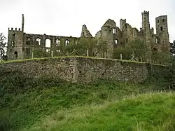 - ↑ Diederick Santer signale que les pompiers ont reçu, la nuit de l'embrasement du château, une centaine d'appels de personnes persuadées que Haddon Hall était la proie des flammes.