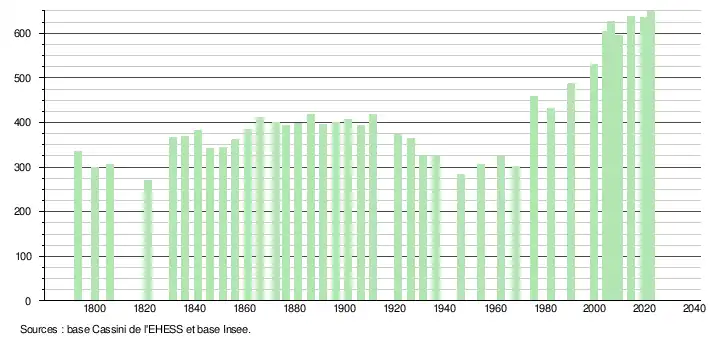 - ↑ Fiches Insee - Populations de référence de la commune pour les années 2006, 2007, 2008, 2009, 2010, 2011, 2012, 2013, 2014, 2015, 2016, 2017, 2018, 2019, 2020, 2021 et 2022.