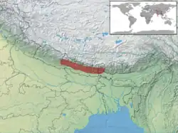 Cette espèce se rencontre au Sikkim et au Bengale-Occidental en Inde, au Népal et au Tibet en République populaire de Chine[1].