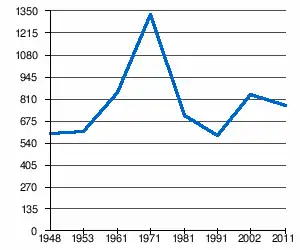 | 597 | 611 | 847 | 1 328 | 709 | 594 | 836[2] | 771[1] |