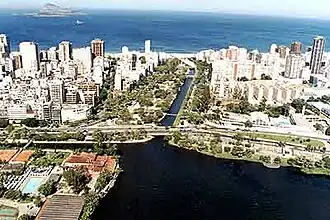 Le canal reliant le Lagoa Rodrigo de Freitas à la plage est antérieur au projet de jardin. Il a été construit au début des années 1920, par le maire Carlos Sampaio, dans le but de renouveler les eaux de la lagune et donc de la rendre plus saine. Il visait également à réduire les inondations[1]. A sa pointe près de la plage, une pierre sculptée en bas-relief à côté d'un petit escalier en pierre qui descend jusqu'au canal, indique l'année 1922 et les inscriptions suivantes :