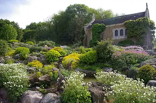 Dans le jardin se trouve la chapelle Sainte-Valérie (48° 39′ 35,2″ N, 6° 09′ 13″ E) qui surplombe l'alpinum[11]. Elle a été érigée au XVIe siècle en l'honneur de Valérie Geoffroy, soit par son père Jean Geoffroy[12], soit par son époux Antoine Champier (fils de Symphorien Champier et filleul du duc Antoine de Lorraine)[13]. C'est une dépendance du château du Montet situé en lisière du jardin.