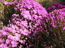 La végétation d'Afrique du Sud est représentée par des arbres dont des acacias et des erythrinas, et surtout des fleurs éclatantes gazanias et diverses composées et plantes grasses :