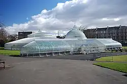 Vue des serres du jardin botanique de Glasgow. | ||