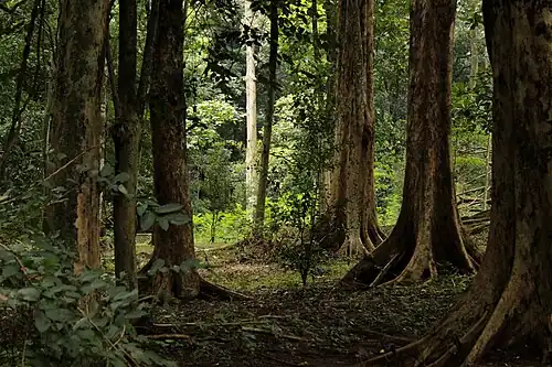 On peut y trouver des Browneas, des Cassias, des Sennas (Senna siamea), des Saracas, des Pterocarpus indicus, des Acacia auriculiformis, des Peltophorum pterocarpum, des Parkia timoriana, des palmiers (dont celui endémique à l'Indonésie[3], des orchidées, des fougères, des Chrysopogons[4], de la sambong, du bambou et de la pomme-chien.