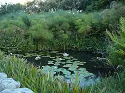 - L’entrée du jardin est très intéressante car on y trouve notamment le Vygie Beds, qui est en fait un immense parterre de ficoïdes fleurissant en octobre en offrant une large palette de couleurs vives. L’étang principal présente un bel exemple de la végétation des zones marécageuses : papyrus, nénuphars bleus et autres plantes palustres.