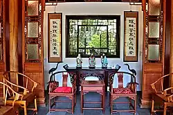 Les jardins chinois classiques utilisent les principes philosophiques du Feng Shui et du Taoïsme, s'efforçant d'atteindre l'harmonie et l'équilibre des contraires. Des rochers escarpés sont juxtaposés à un feuillage délicat. L'eau est également un élément important du jardin. Le grand étang offre le calme, le son, un reflet du ciel et aide à unifier les autres éléments. Les poissons et les tortues vivent dans le jardin et ont également une fonction symbolique. Des chauves-souris, des dragons et des phénix sont représentés dans des objets répartis dans tout le jardin. De gros rochers sont placés stratégiquement et sont destinés à représenter des montagnes cachant et révélant des éléments du parc[1].