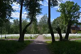 En 2009, un projet de restauration du parc a été lancé et la rénovation du parc a commencé à partir de 2012. Du XVIIIe siècle, des structures murales en pierre et des bassins à poissons ont été préservés sur le site, et entre-autres, une tonnelle. On y trouve des tilleuls, qui ont été plantés dans les années 1830 et des chênes, qui ont été plantés dans les années 1870. Lors de la rénovation, des pommiers, des haies de lilas et des arbustes à baies, entre autres, ont été plantés[1],[2],[3].