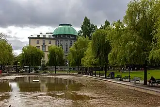 Au nord du grand étang se trouve le bâtiment principal monumental de la bibliothèque municipale de Stockholm, construit en 1928 par l'architecte Gunnar Asplund. Le bâtiment a été financé grâce à d'importants dons, notamment de la fondation de Knut et Alice Wallenberg, et appartient aujourd'hui à la ville de Stockholm.