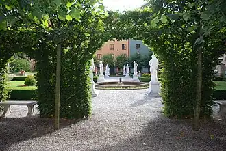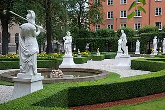 À la fin des années 1990, le jardin a été restauré pour redevenir un jardin baroque. Le long des allées de Scheelegatan, le jardin est délimité à l'intérieur d'une clôture en fer forgé par trois allées de tilleuls taillés, deux rangées au nord et une au sud. Le jardin est composé principalement de quatre blocs de pelouses entourés de briques et de buis bas. Il y a deux fontaines dans le jardin. Les allées sont pavées de bardeaux blancs.