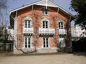 - ↑ Plaque et médaillon d'Élisa Mercœur : 47° 13′ 00″ N, 1° 32′ 41″ O.
