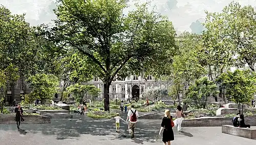Photomontage du projet de jardin mémoriel. Credit : Wagon Landscaping/Ville de Paris | ||||