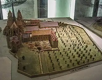 - Le plan de Saint-Gall (plan du IXe siècle d'une abbaye jamais construite et de ses jardins) de la bibliothèque de l'abbaye de Saint-Gall en Suisse alémanique[12].