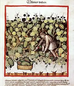- Le capitulaire De Villis, ou liste de Charlemagne, aussi appelé Herbularius (fin du VIIIe siècle ou début du IXe siècle)[3], comprend une liste de 90 espèces à planter dans les cloîtres et les jardins de l'Empire carolingien. Parmi elles, des légumes, des herbes médicinales et des herbes aromatiques pour préparer remèdes, tisanes et onguents, mais aussi des herbes condimentaires pour relever les plats.
