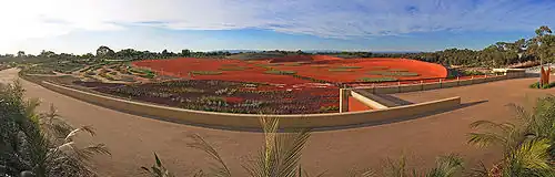 Le jardin de sable rouge est l'élément central du jardin australien. Il présente du sable rouge vif avec des cercles d'arroches et des monticules en forme de croissant conçus pour faire écho aux formes et aux couleurs du centre de l'Australie. Le jardin est conçu pour présenter des poussées saisonnières de fleurs sauvages, comme on le voit dans les déserts de l'Australie centrale.
