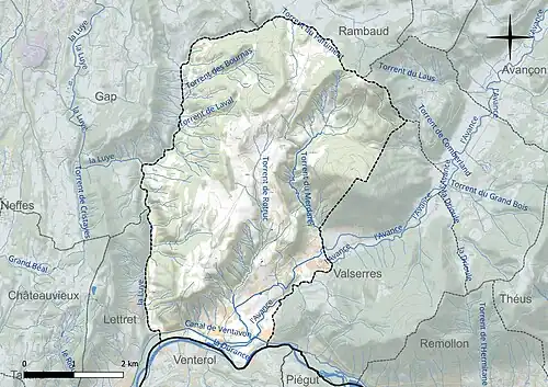 Les communes limitrophes sont Gap, Lettret, Rambaud, Saint-Étienne-le-Laus, Valserres et Venterol.