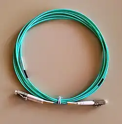 Lorsqu'il s'agit d'interconnexions de fibre optique, on parle de « jarretière optique ».