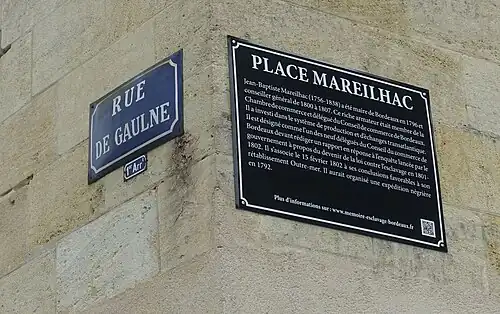 - ↑ Eva Fonteneau, « Plaques de rue : à Bordeaux, un «tabou tombe» en catimini », sur liberation.fr, (consulté le )