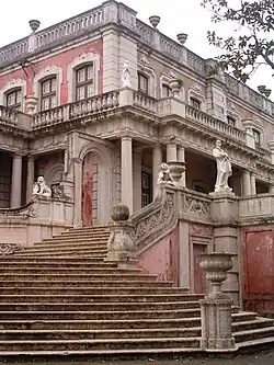 La Casa do Infantado chargea Jean-Baptiste Robillon des travaux au palais de Queluz en 1758[1]. Il a été responsable des jardins, de nombreux bâtiments, des intérieurs rococo. Il a construit la grande aile ouest, connu sous le nom d'aile Robillon ou de pavillon Robillon avec l'escalier des Lions, qui illustre mieux que tout autre les excès de l'architecture baroque et rococo. Elle est achevée en 1779. Elle possède une colonnade dorique sur toute la longueur de ses façades ouest et sud, et le toit dispose d'un balcon à balustrade accessible à partir de l'étage supérieur.