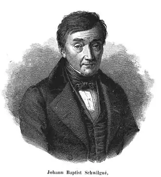 Jean-Baptiste Schwilgué (né à Strasbourg le [1], décédé au même endroit le [2]) est l'auteur de la troisième horloge astronomique de la Cathédrale de Strasbourg, construite entre 1838 et 1843. Un des lycées de Sélestat porte son nom[3], ainsi qu'une école primaire située à Strasbourg dans le quartier de la cité de l'Ill.