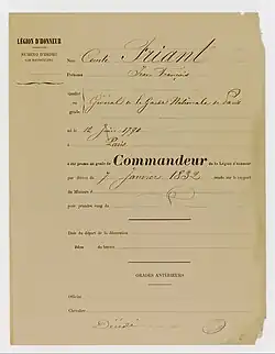 - Commandeur de la Légion d'honneur(« Cote LH/1037/86 »).