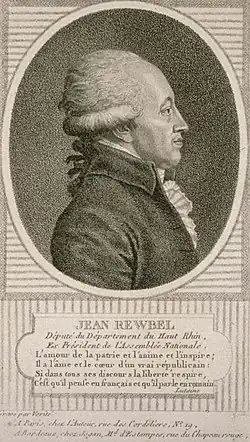 Jean-François Reubell ou Rewbell (il signait Reubell), né le à Colmar, en Alsace, et mort le dans la même ville, est un homme politique et diplomate français, une figure républicaine modérée mais intransigeante de la Révolution et un de ses principaux acteurs[2].