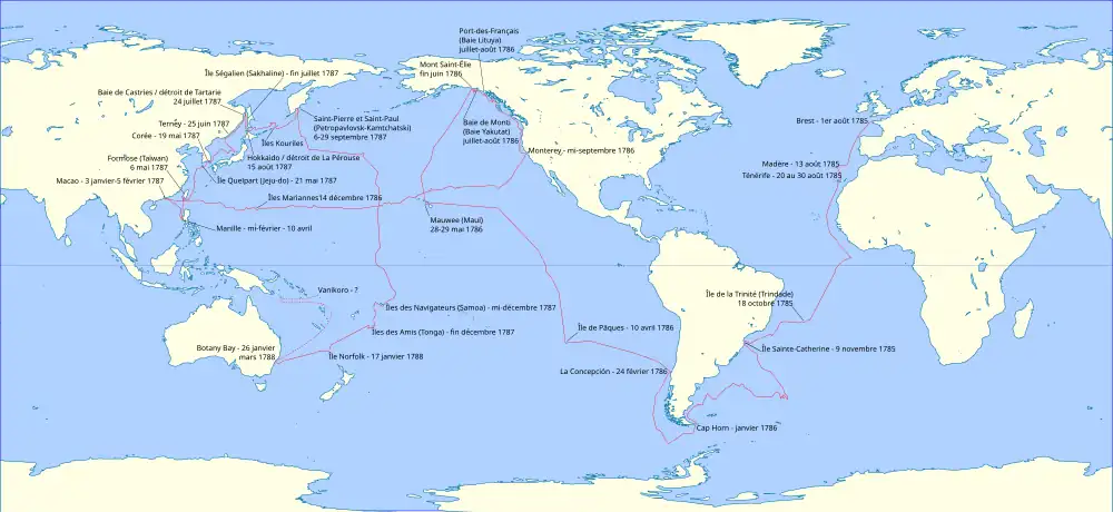 - ↑ Jean-François de Galaup comte de La Pérouse, Voyage de La Pérouse autour du Monde, Volume 2, Imprimerie de la République, , 414 p. (lire en ligne), p. 6.