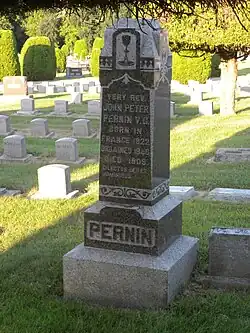 En , Jean-Pierre Pernin était curé de Peshtigo et Marinette, Wisconsin, deux villes voisines de l'exploitation forestière sur la Green Bay. Causé par une longue sécheresse estivale et l'utilisation imprudente du feu dans une forêt entourant une ville construite en bois, une catastrophe connue sous le nom de Grand Incendie de Peshtigo a englouti Peshtigo dans la nuit du 8 au , brûlant complètement la ville et tuant plus de 1500 personnes, l'incendie de forêt le plus meurtrier de l'histoire américaine. [18] Pernin a survécu à l'incendie avec des centaines d'autres, entrant dans la rivière Peshtigo vers 22 heures et s'immergeant et s'éclaboussant dans l'eau pendant cinq heures et demie. [19] [20]