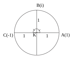 Ce qui place le point B à la verticale du point K, à une distance de 1. La ligne KB représente alors l'imaginaire i (noté à l'époque √–1).