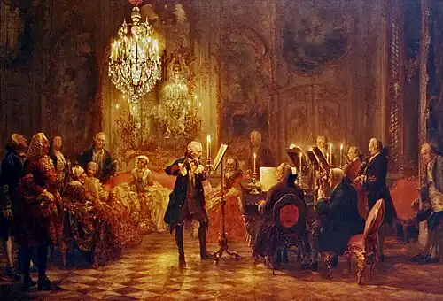 En mai 1747, il se rend en compagnie de son fils Wilhelm Friedemann à Potsdam pour une visite à Frédéric II sollicitée par le souverain lui-même[80] par l'entremise de Carl Philipp Emanuel, claveciniste de la cour depuis 1741.