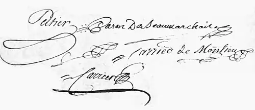 Montieu doit de l'argent à Beaumarchais, il conclut un accord avec lui chez Me Momet, il le payera avec des traites tirées sur Peltier, Carier et Cantini et 100 000 livres lors de la revente de Château Lafitte.