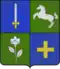 Écartelé : au 1 du quartier des comtes militaires de l'Empire ; au 2, de sinople, à un cheval galopant d'argent; au 3, de sinople, à une fleur de pensée au naturel ; au 4, d'azur, à la croix alésée d'or. |