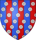 Palé d'azur et de gueules de 6 pièces, semé de roses d'argent. |