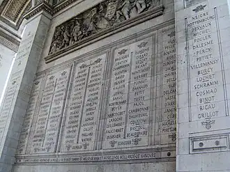 | Hommages | Nom gravé sous l'arc de triomphe de l'Étoile, 8e colonne. | |