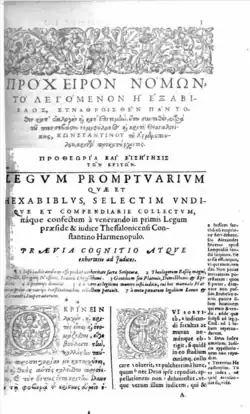 - Constantini Harmenopuli Promptuarium juris, trad. en latin. Lausanne,1580, in-8°.