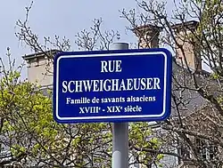 Le nom d'une rue de Strasbourg, dans le quartier de l'Orangerie, rend hommage à la famille Schweighaeuser[2].
