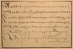 - Alphabet und aller art characteren, so iemals von Anbegin der Welt, bey allen Nationen, in allerlen Sprachen, im Brauch gewesen ausz vielen autoribus mit fleisz zusammen gezogen. Kunstlich in Kupffer gestochen, unnd von Neuwem an Taggeben, durch Joh. Theodorum, und Joh. Israel von Bry, gebruder. Franckfurt, 1596. 4° obl., 47 pl. Cat. Destailleur n° 833.