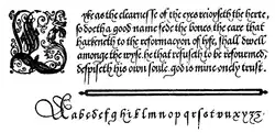 - Specimens manuscrits anglais dédiés à Mme Elizabeth, fille unique du roi de Grande Bretaigne. Angleterre : ca. 1610. 25 f. (Chicago NL : Wing MS ZW 639.B 382).