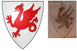 D'argent, au dragon de gueules[2]. |