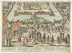 Le 7 novembre, à la veille de la signature de la pacification de Gand, les Wallons et les orangistes assiègent le château des Espagnols de Gand et le 10, après la publication du traité, la garnison du château capitule.