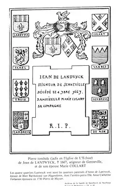 Pierre tombale[5], jadis en l'église de l'Ecluse, de Jean de Lantwyck † 1667, Seigneur de Genneville[6].