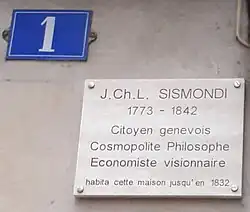 - 1 2 « Rue SISMONDI | Noms géographiques du canton de Genève », sur ge.ch (consulté le )