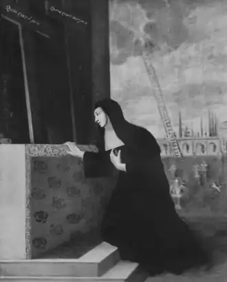 Désireuse d'entrer dans l'ordre des Clarisses, elle se heurte au refus de son père, qui considère ce projet comme extravagant. Elle met donc de côté cette aspiration par obéissance, poursuivant ses activités pieuses[2].