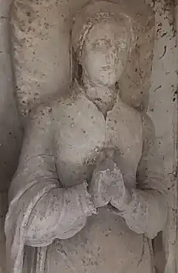 Au troisième, les armes de Louise Rouault : de sable à 2 léopards d'or l'un sur l'autre.