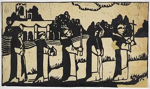 Gravure d'une procession monastique par Jeanne Malivel, conservée au Musée de Bretagne, Collection Arts graphiques