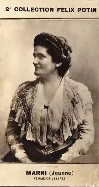 Elle utilisera le pseudonyme de Jeanne Marni pour l'essentiel de ses écrits.