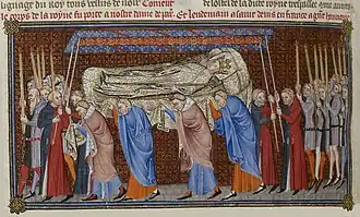 Son corps fut enterré dans la basilique de Saint-Denis, son cœur dans l'église des Cordeliers de Paris et ses entrailles au couvent des Célestins.