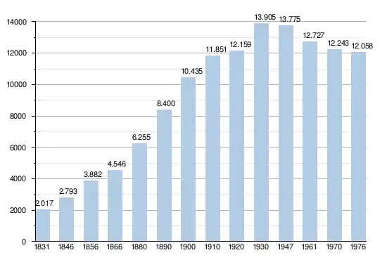 - Sources : INS, Rem. : 1831 jusqu'en 1970 = recensements, 1976 = nombre d'habitants au 31 décembre.