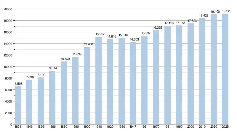 - Source: DGS , de 1831 à 1981=recensements population; à partir de 1990 = nombre d'habitants chaque 1 janvier[2]